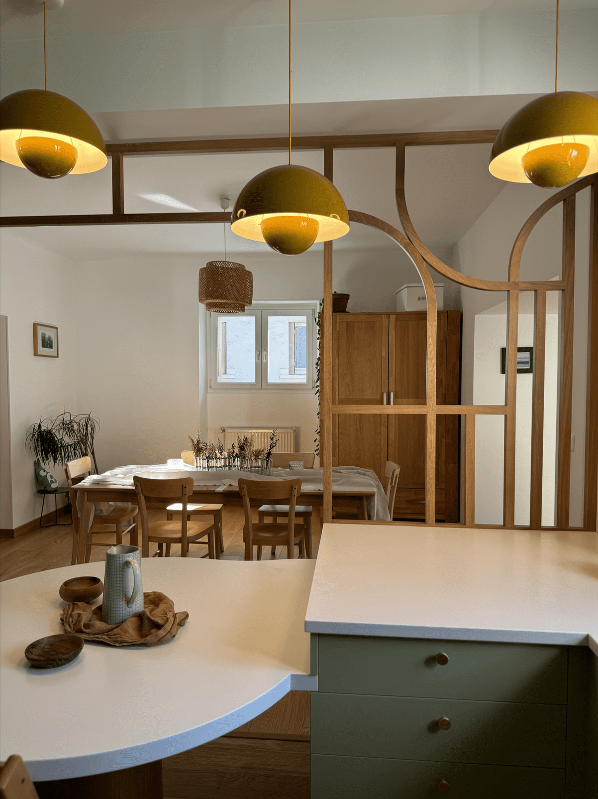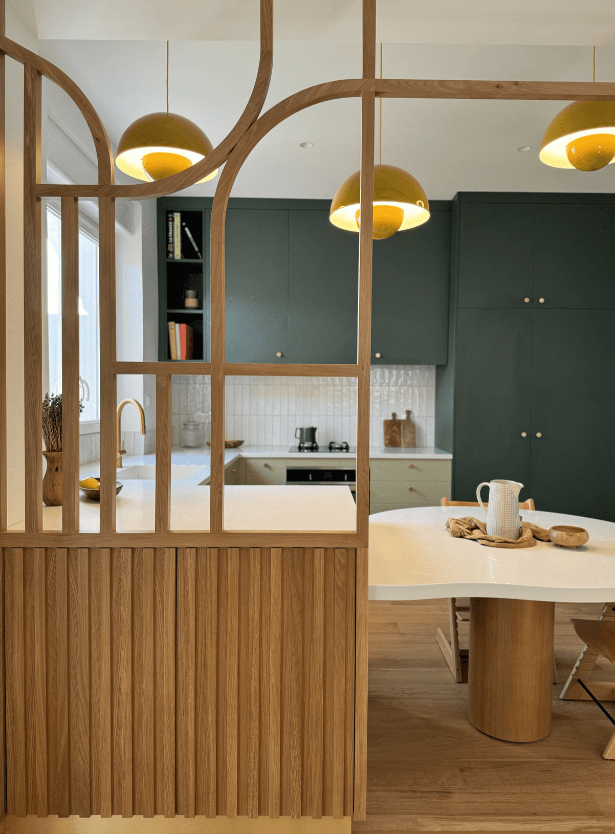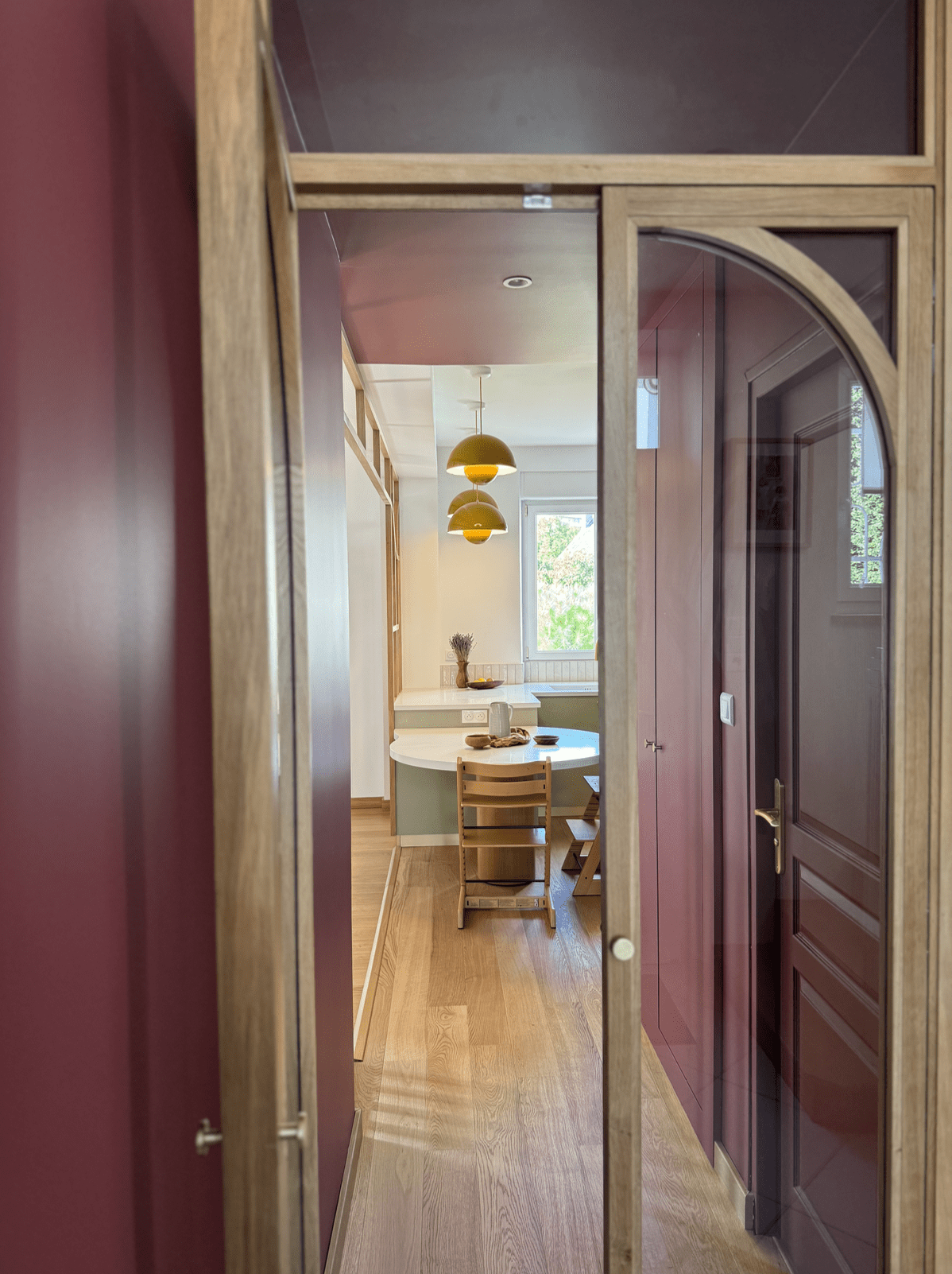 ENJEUX / Nous avons accompagné une famille dans la rénovation et aménagement de leur entrée et de leur cuisine/salle à manger.